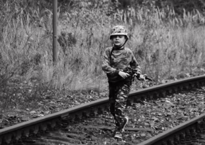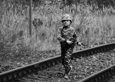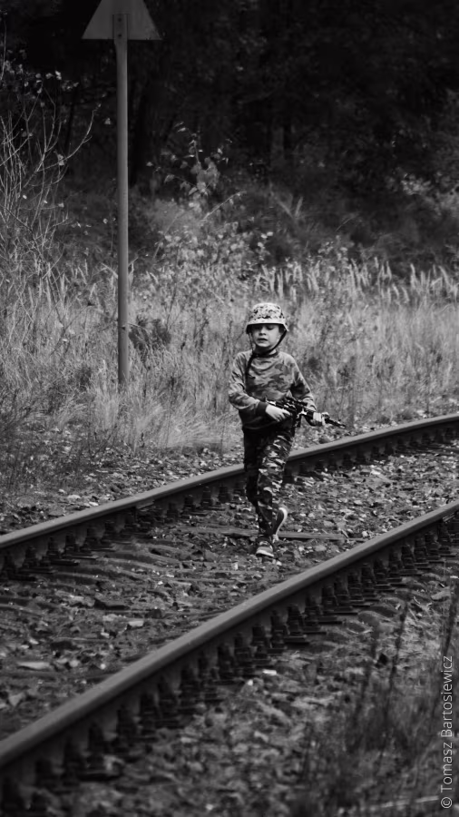 Za jakiś czas obejrzymy „Przełęcz ocalonych” lub inne dzieło filmowe mocno pokazujące z czym związany jest żołnierski zawód. Tymczasem mój młodzieniec jest za młody na takie kino, więc od święta niech biega razem z rówieśnikami z karabinem w ręku.